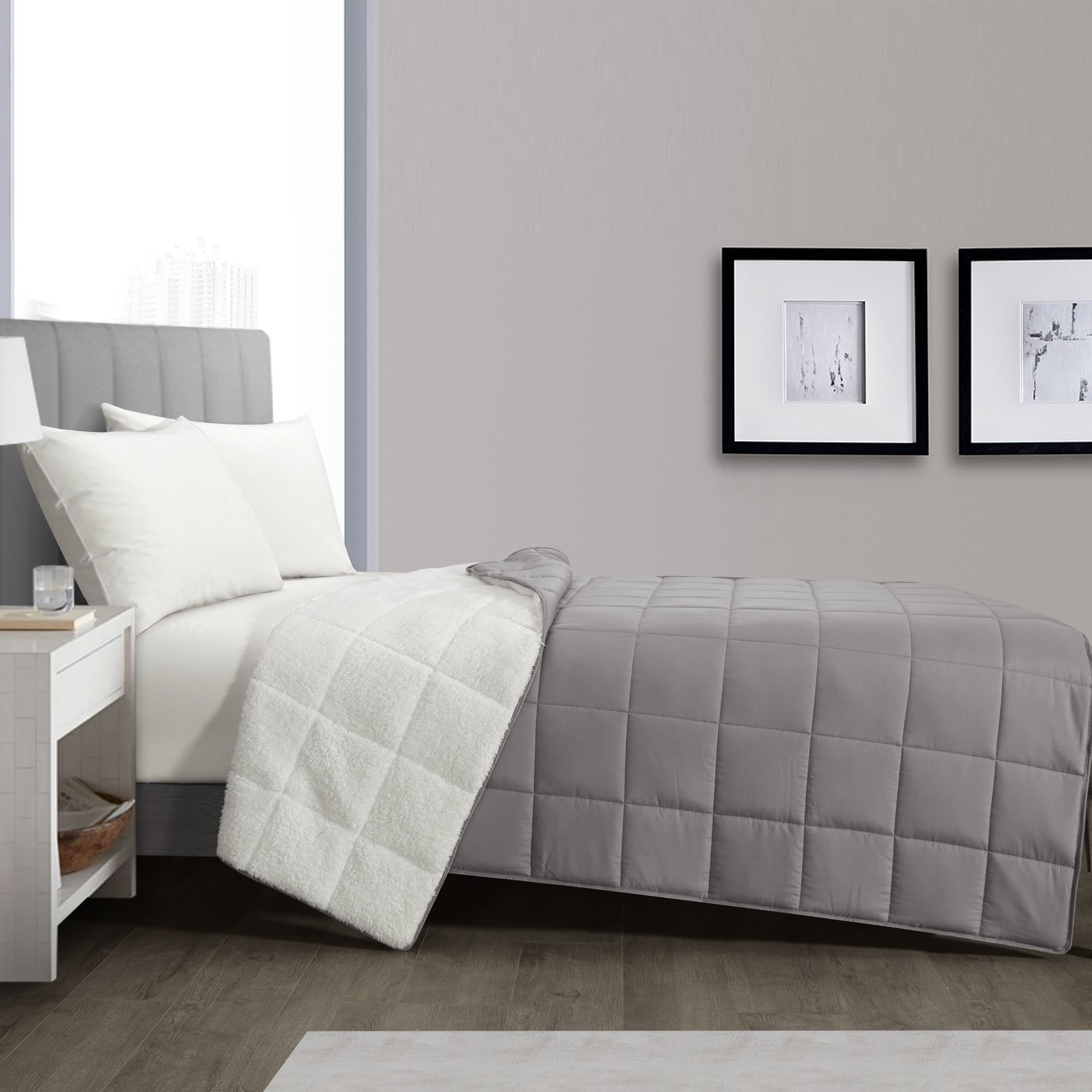 Well Being Super Soft Weighted Blanket Reverse To Sherpa 12 Lbs 48x72 Grey Walmart Com