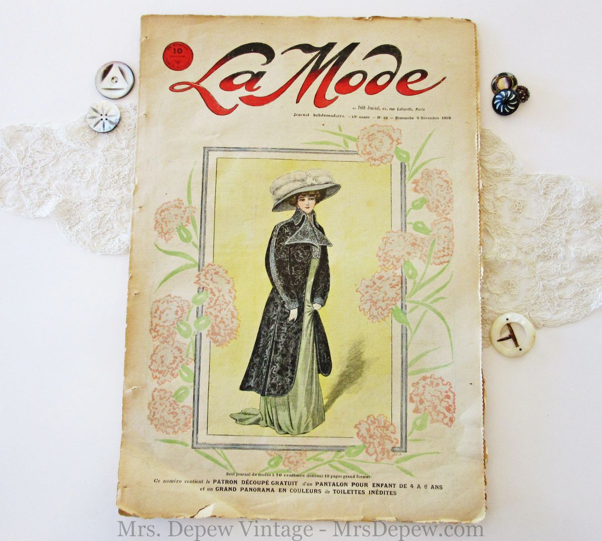 Rare Antique French Magazine La Mode No 49 6 Decembre 1908 Sewing And Needlework